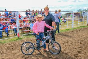 There is always fun things for kids to participate in. Some events are barrel racing, goat tail untying, goat tying, mutton bustin' and bareback pony riding. Mechanical Bucking Bull both days.